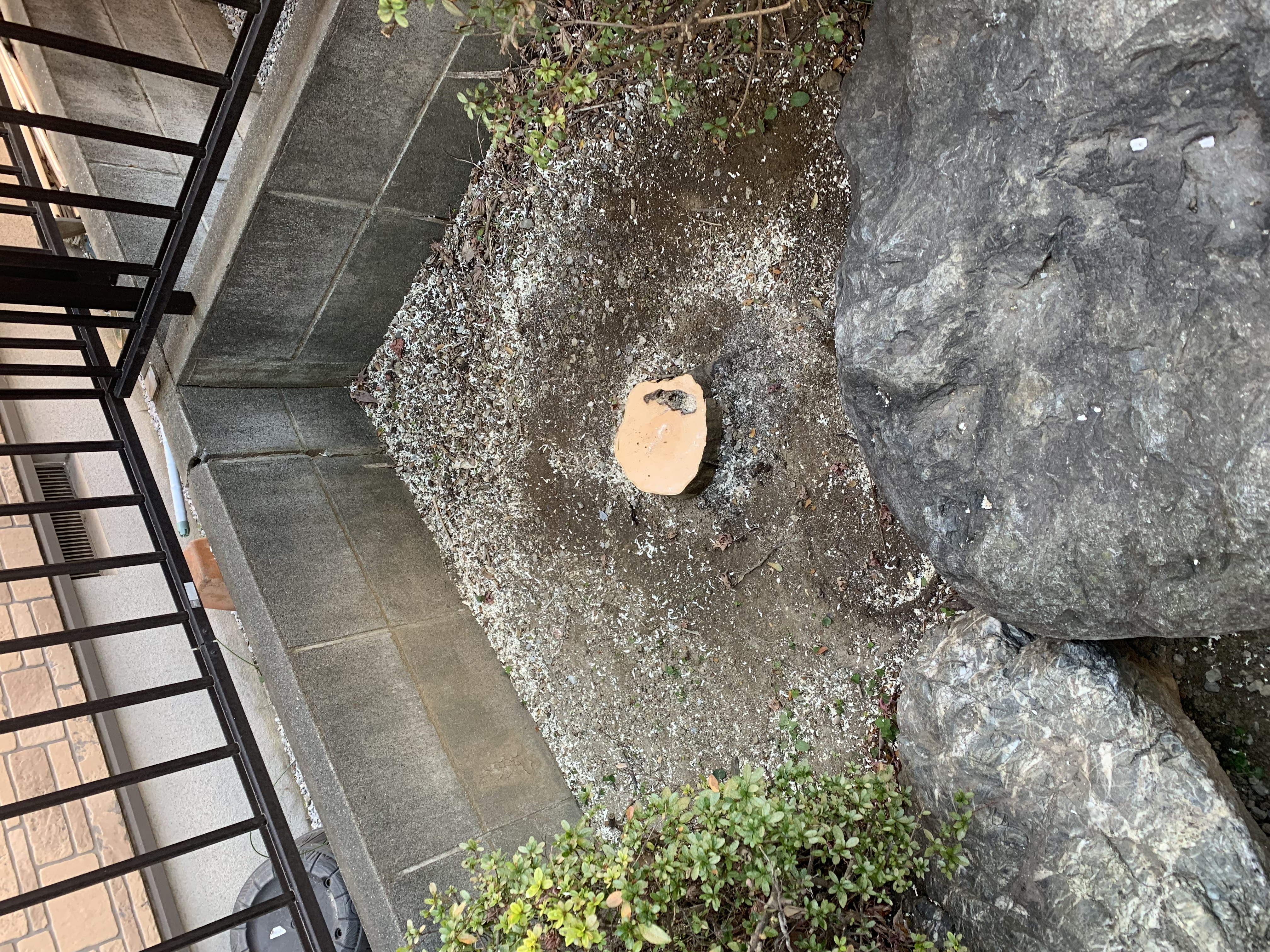 伐採した木は敷地内に並べておきました。出来るだけ安くして欲しいとのお客様から要望がありましたので、処分代がかからないように敷地内に置いてきました。