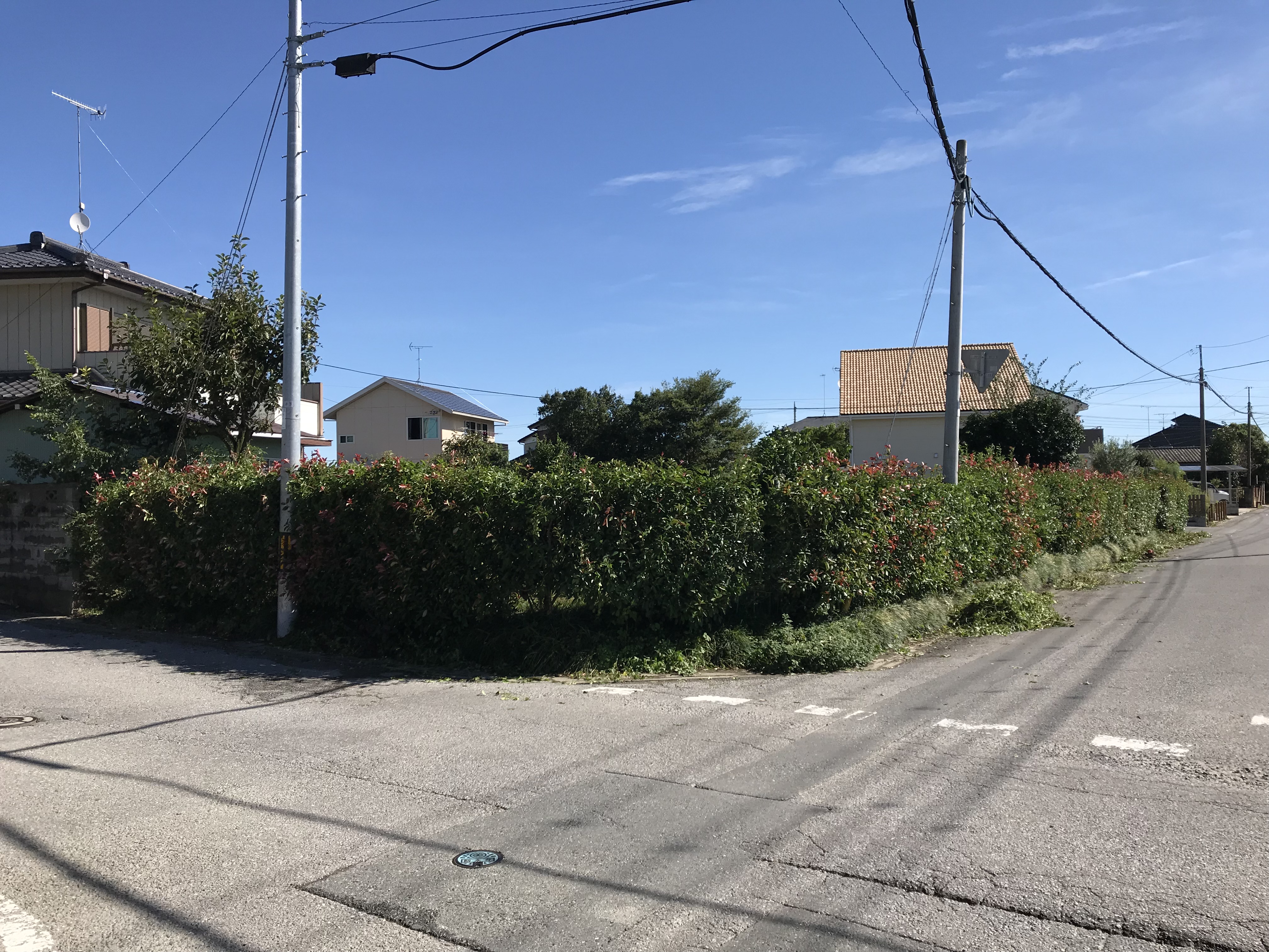 抜根した後に防草シートを貼り砂利を敷きました。